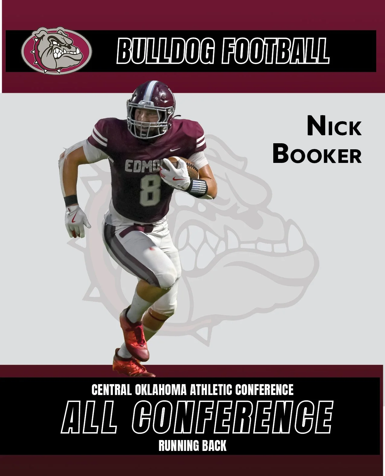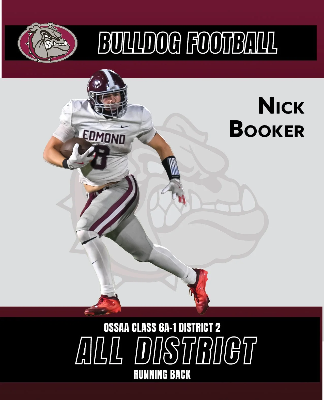 In addition to team successes, Booker amassed several individual accolades in 2024. He was honored as EMHS OSSAA Quarterfinals Co-Special Teams Player of the Game and recognized as KREF SPORTS TV Co-Defensive Player of the Game vs. Westmoore. His defensive prowess also earned him KREF SPORTS TV Defensive Player of the Game vs. Owasso and the EMHS Week 5 Defensive/Special Teams Player of the Game award.